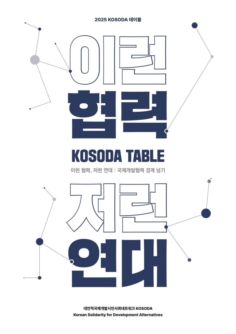 대안적국제개발시민사회네트워크(KOSODA). [2025 KOSODA 테이블] 이런 협력 저런 연대: 국제개발협력 경계 넘기. KOSODA. 2025. 다운로드 Chapter 1. 안녕하세요, KOSODA 입니다1-1. 대안적 국제개발협력을 …